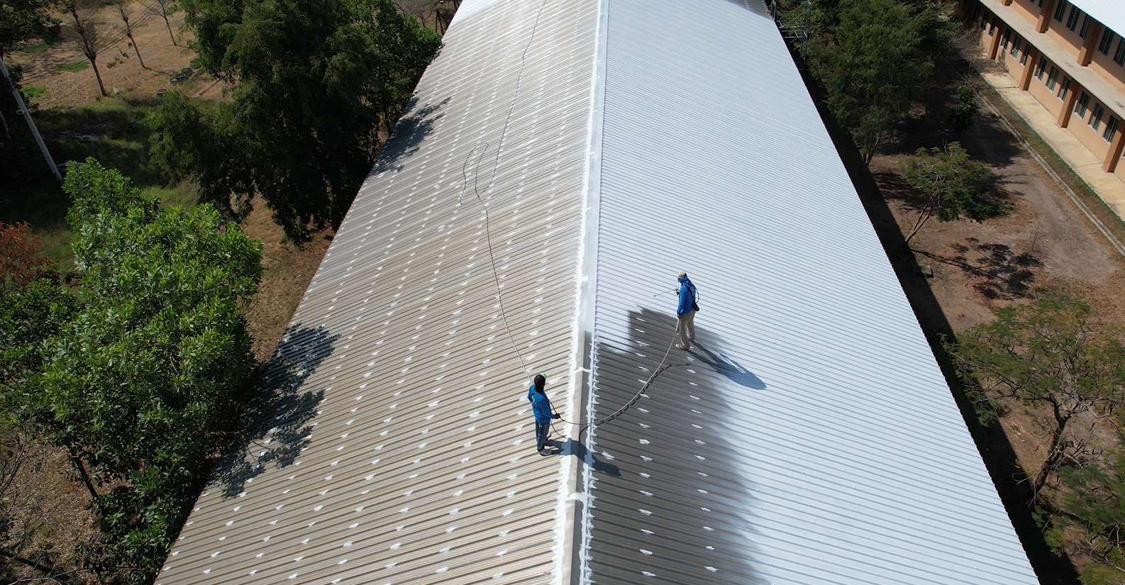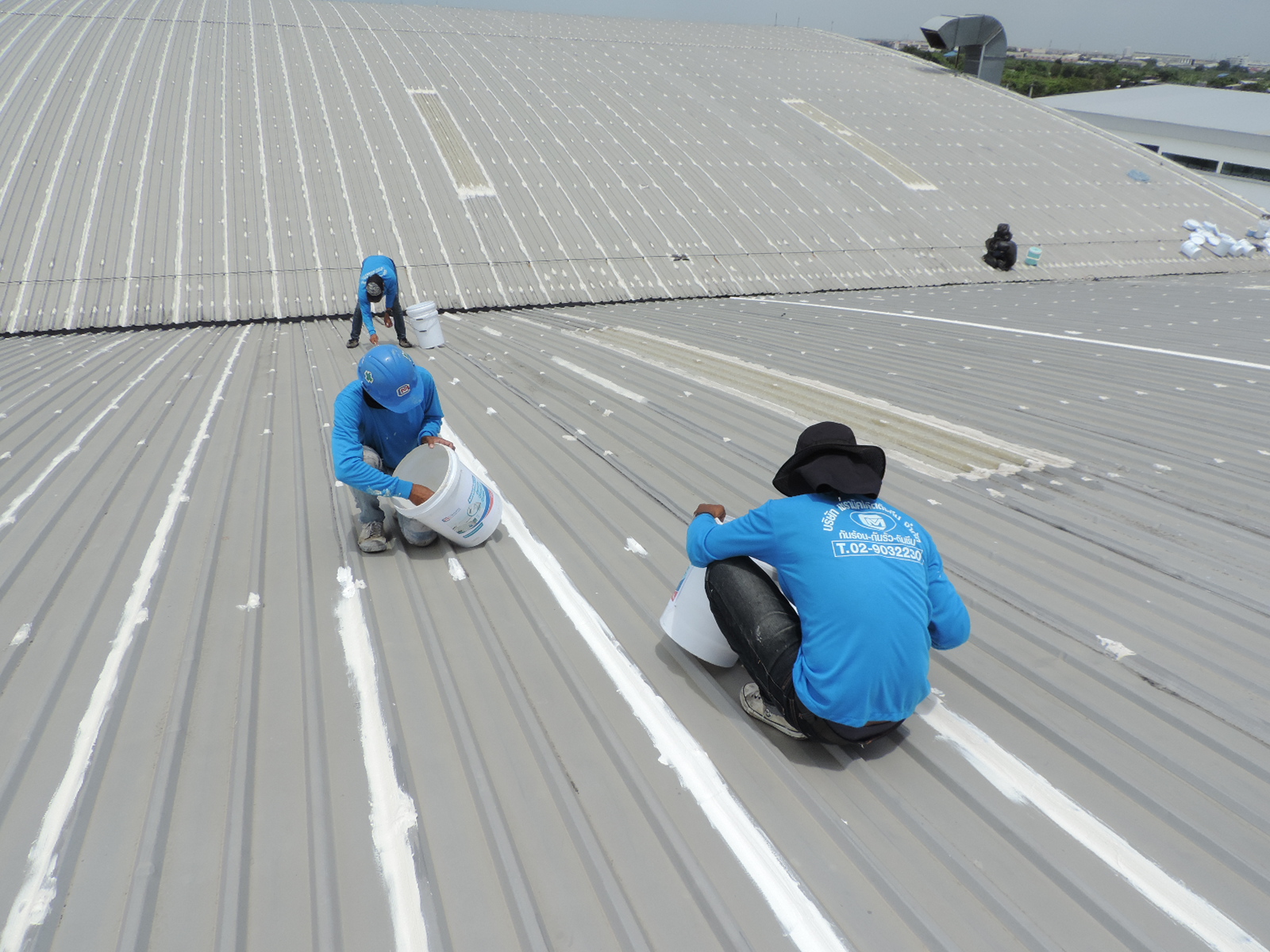 กันรั่ว และกันร้อนทำกันซึมและพ่นสีกันร้อนหลังคาเมทัลชีท