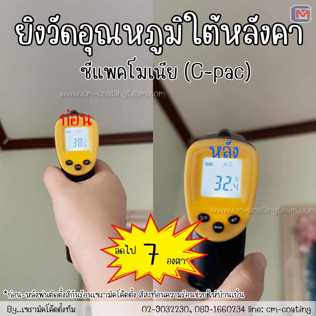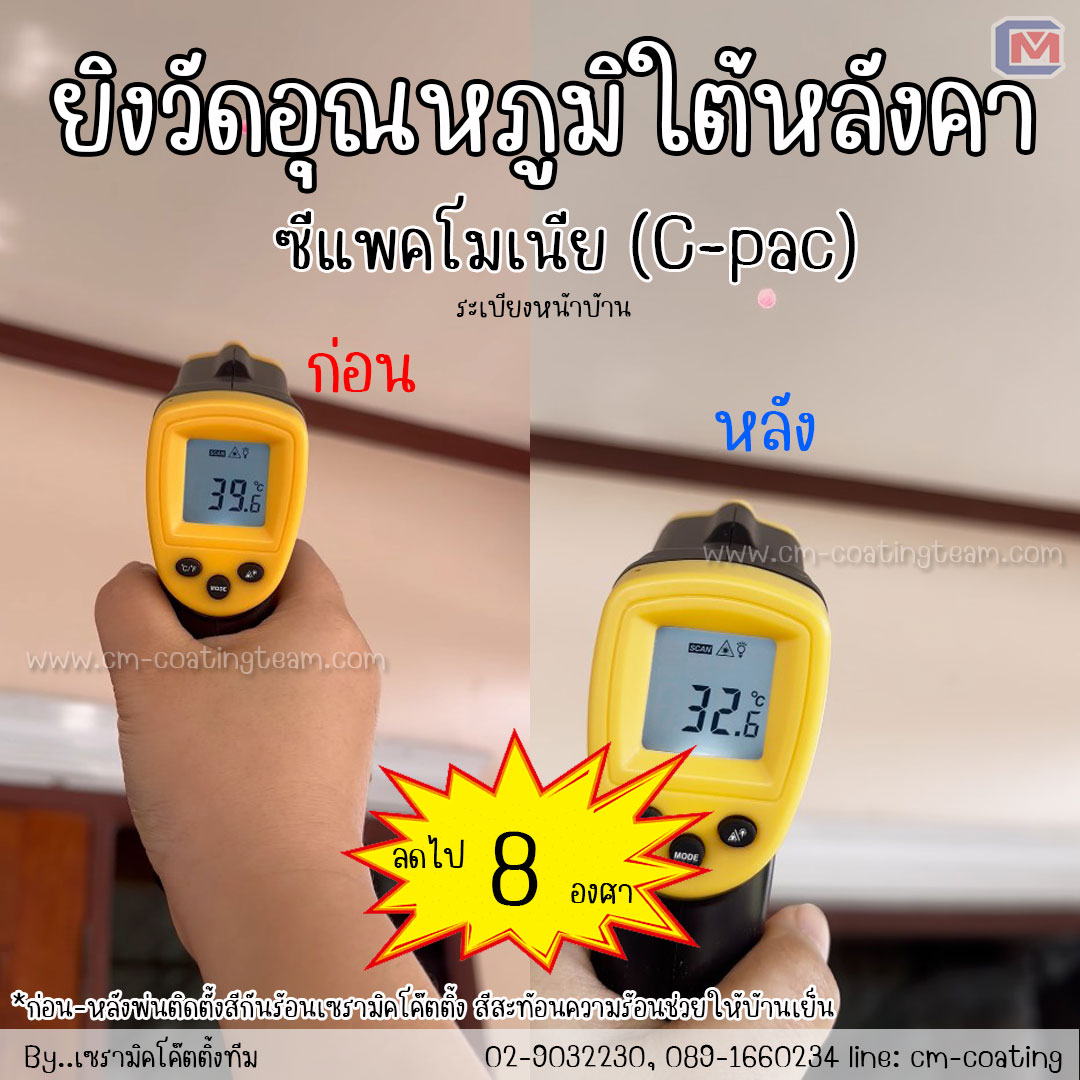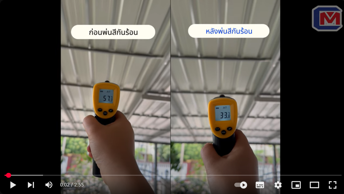 คลิ๊กเพื่อชม VDO ทดสอบวัดอุณหภูมิใต้หลังคาก่อน-หลังติดตั้งสีกันร้อนเซรามิคโค๊ตติ้ง หน้างานบ้านเดี่ยว จ.เพชรบุรี