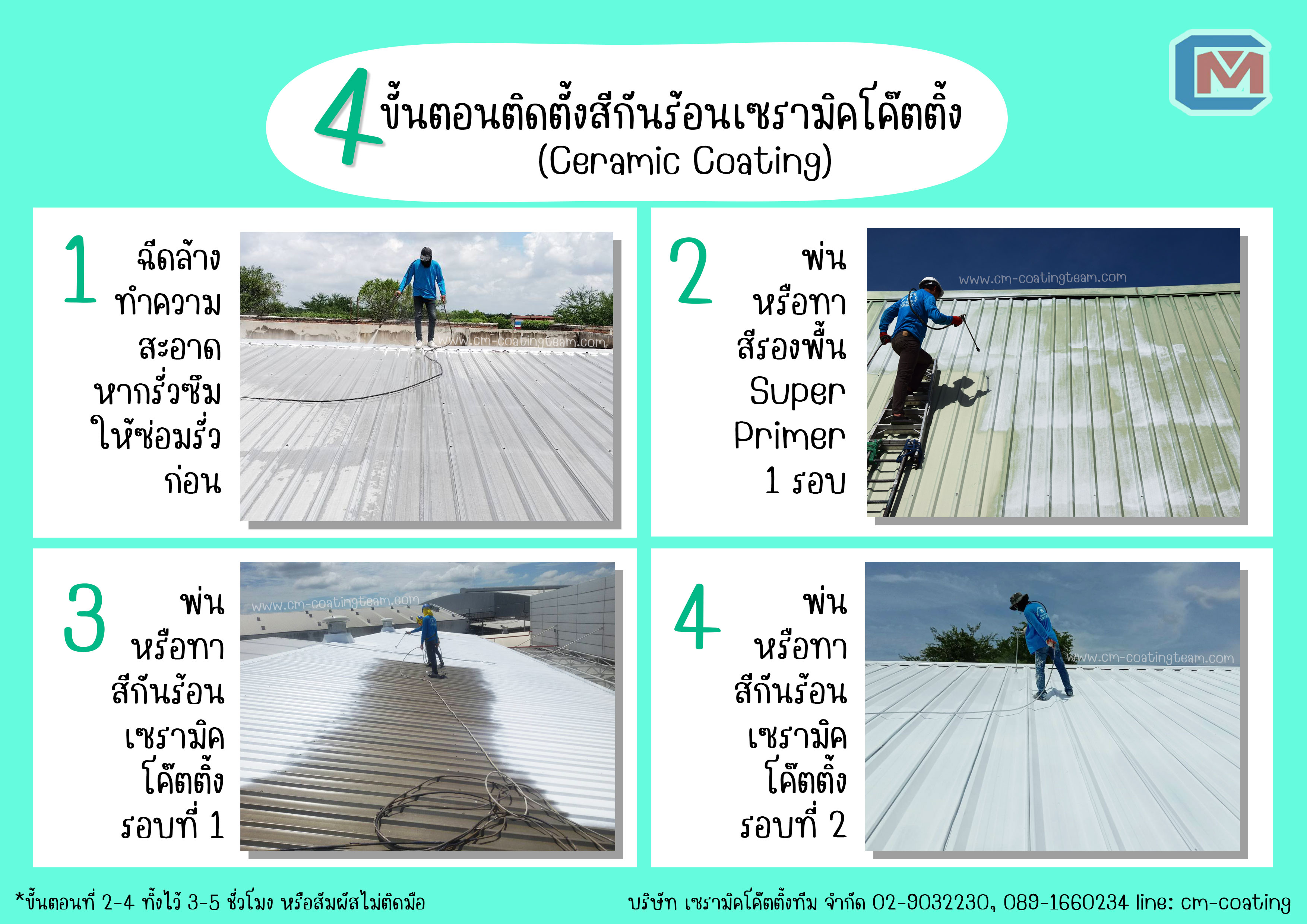 4.พ่นหรือทา สีกันร้อน Ceramic Coating รอบที่ 2 ให้ได้ความหนา 300 ไมครอน ทิ้งไว้ให้แห้ง หรือสัมผัสไม่ติดมือ เพียงเท่านี้ ก็พร้อมกันร้อนได้แล้ว