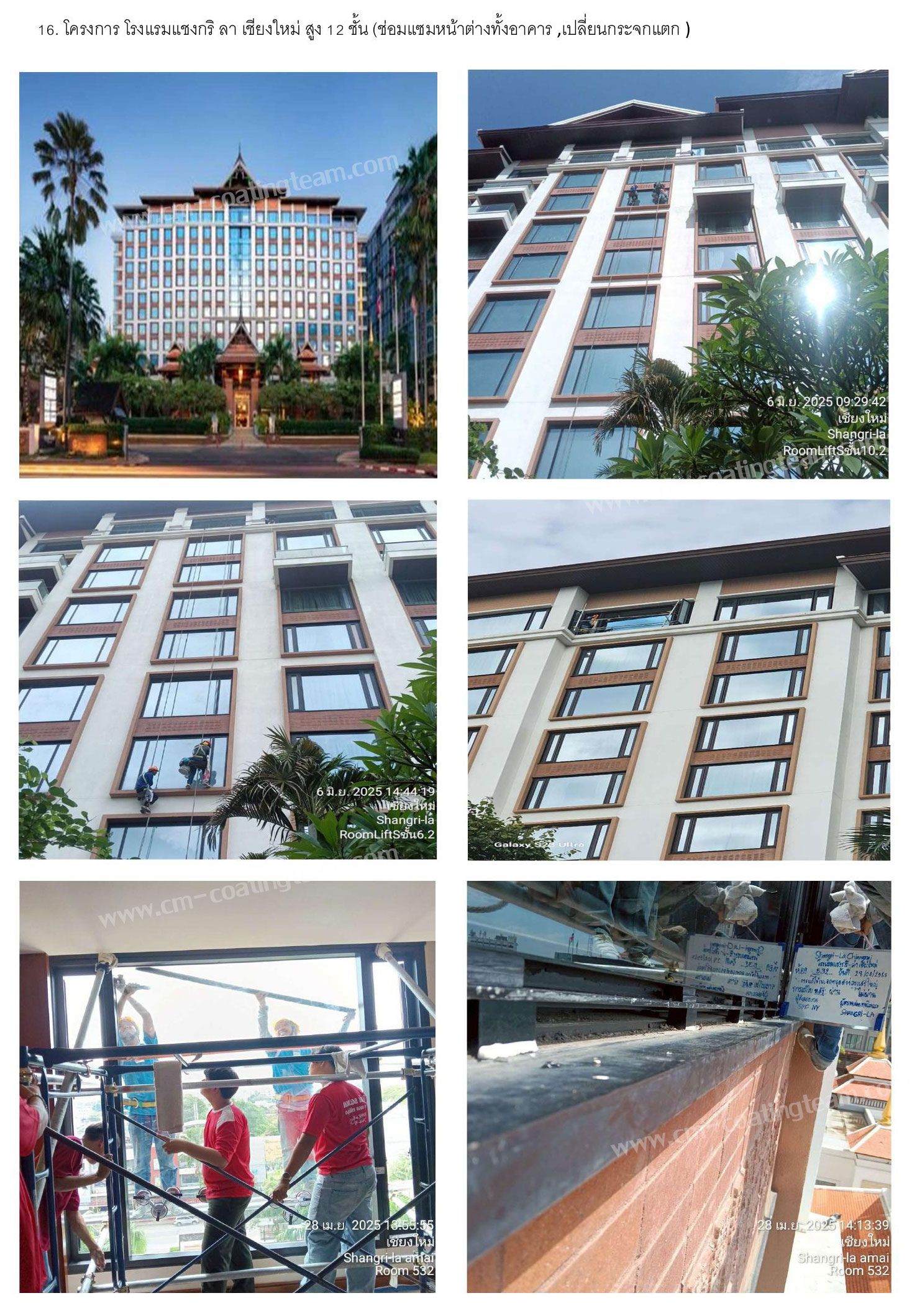16. โครงการ โรงแรมแชงกริ ลา เชียงใหม่ สูง 12 ชั้น (ซ่อมแซมหน้าต่างทั้งอาคาร, เปลี่ยนกระจกแตก)